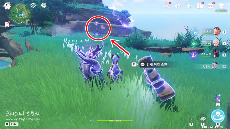 이곳의 번개 씨앗을 소환하면 조금 떨어진 곳에 있는 번개 장막 속 뇌석도 활성화할 수 있다.