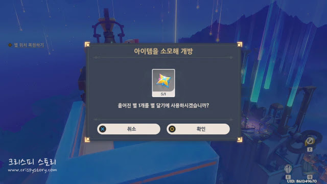 올라오면서 별을 모으지 않았다면 이 임무가 나오지 않고 '흩어진 별 찾기' 임무가 시작된다.