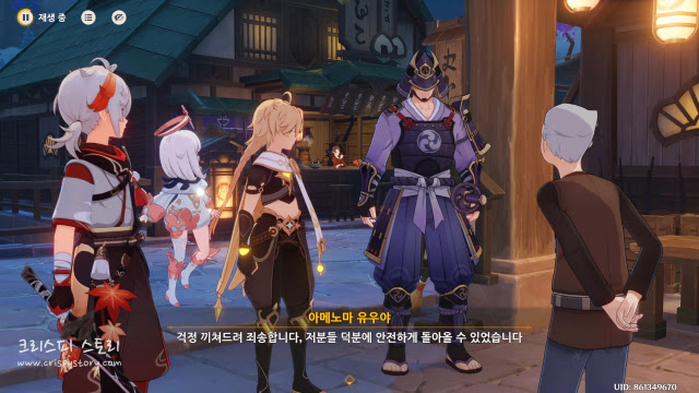 실종자 중에 '아메노마' 가 있기 때문에 상황을 알아보기 위해 아메노마 가문이 운영하는 이나즈마성 대장간으로 향한다.